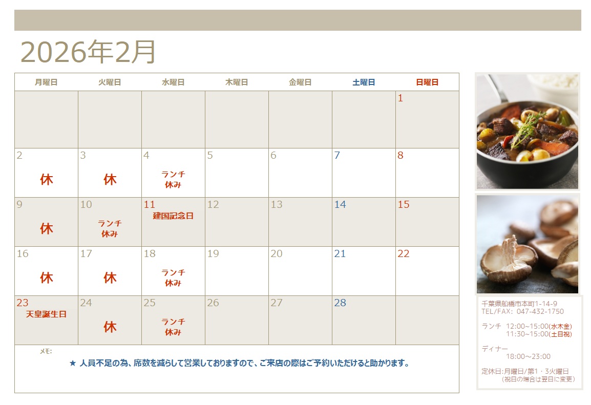 2月2日㈪-3日㈫、9日㈪、16日㈪-17日㈫、24日㈫